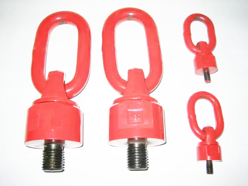 吊環中旋轉吊環又稱萬向吊環或旋轉吊環螺絲,用于有角度的特殊起吊場合。能實現水平360度旋轉和上下180度翻轉,任意方向四倍安全系數。相比傳統的DIN580吊環螺絲(死吊環),更靈活、更能全方面滿足起吊的需求。