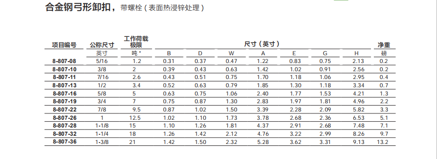合金鋼弓形卸扣 ( 表面熱浸鋅處理 )