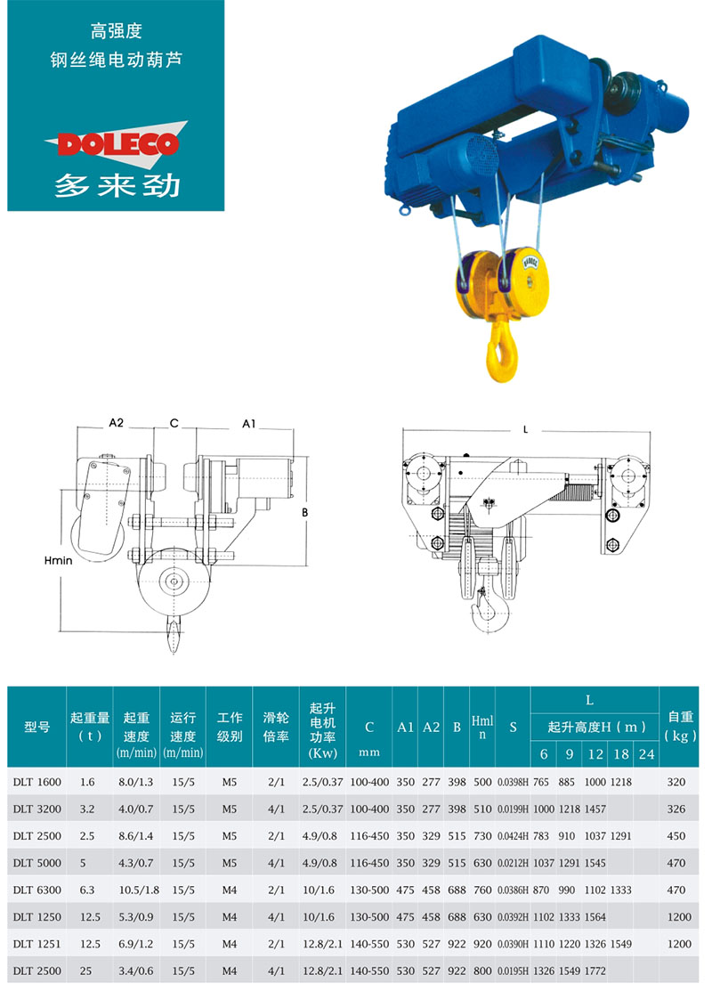 DOLECO多來勁鋼絲繩電動葫蘆